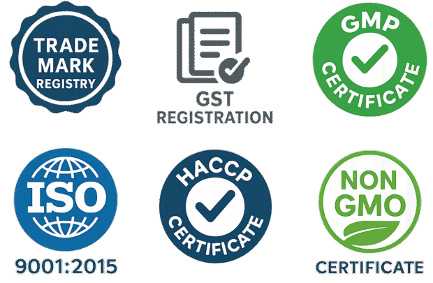 - ट्रेड मार्क प्रमाणपत्र – हमारे ब्रांड की कानूनी मान्यता और सुरक्षा।